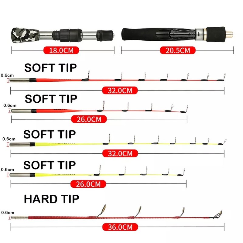 Uzunluk: Buzlu balıkçılık çubukları genellikle normal balıkçılık çubuklarından daha kısadır ve genellikle 18 inç ila 48 inç arasında değişir.Daha kısa uzunluk, buzlu balıkçılık barınağının dar alanında daha kolay kullanılabilmesini sağlar.